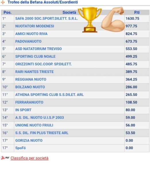 SAFA 2000 prima società classificata al Trofeo della Befana di Nuoto per Salvamento, in programma nella giornata di oggi, 6 gennaio 2022, a Monastier di Treviso.