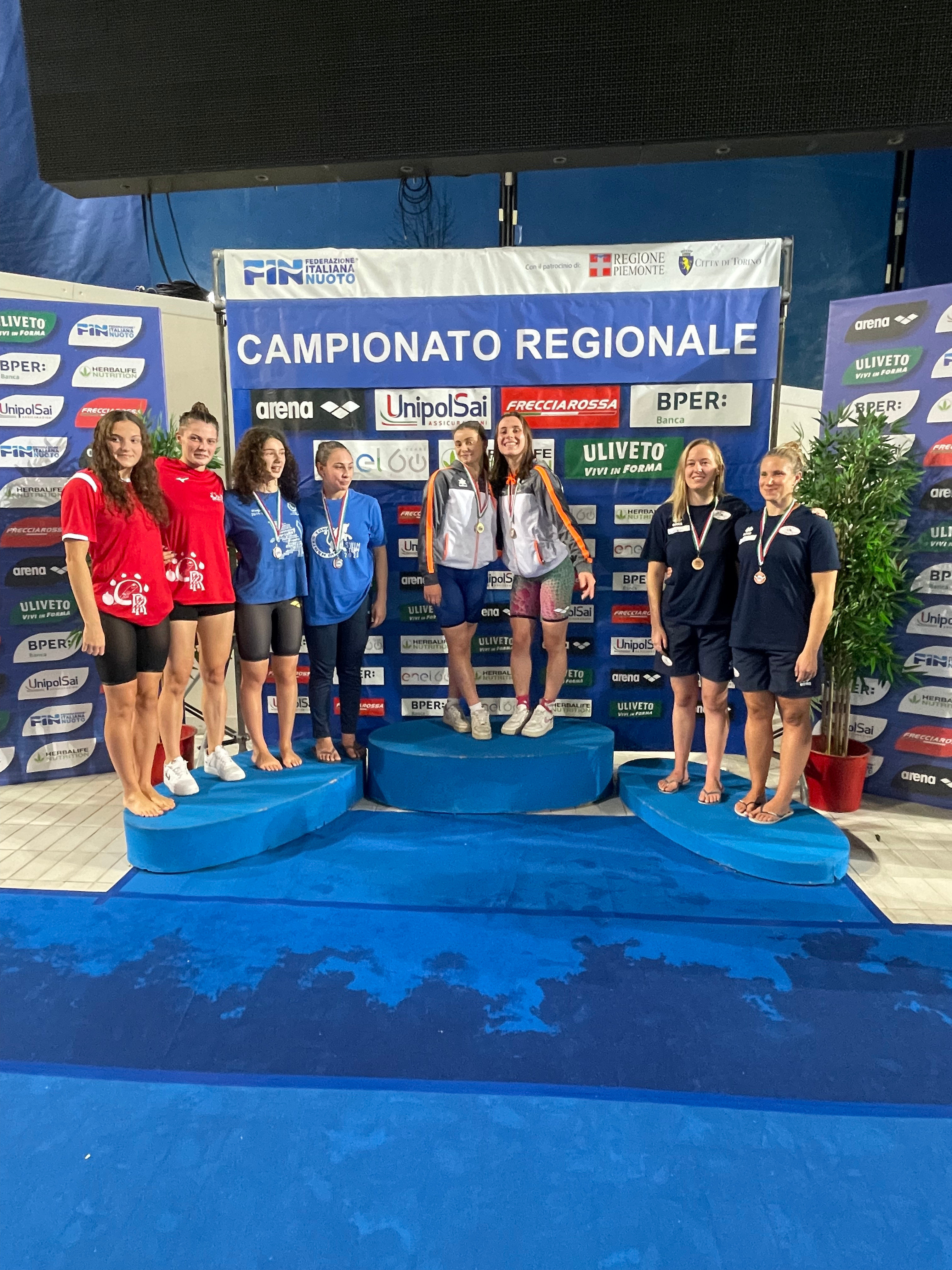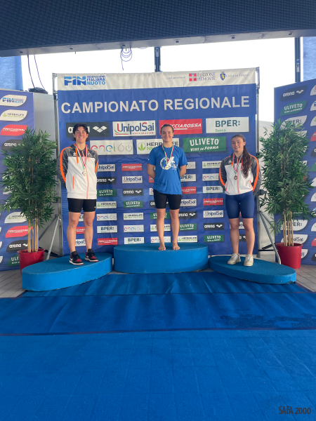 2° posto per DARAIO Maddalena – 3° posto per PILLONI Sara – 4° posto per MAGRINI Alice nei 100m Percorso misto – ASSOLUTI FEMM